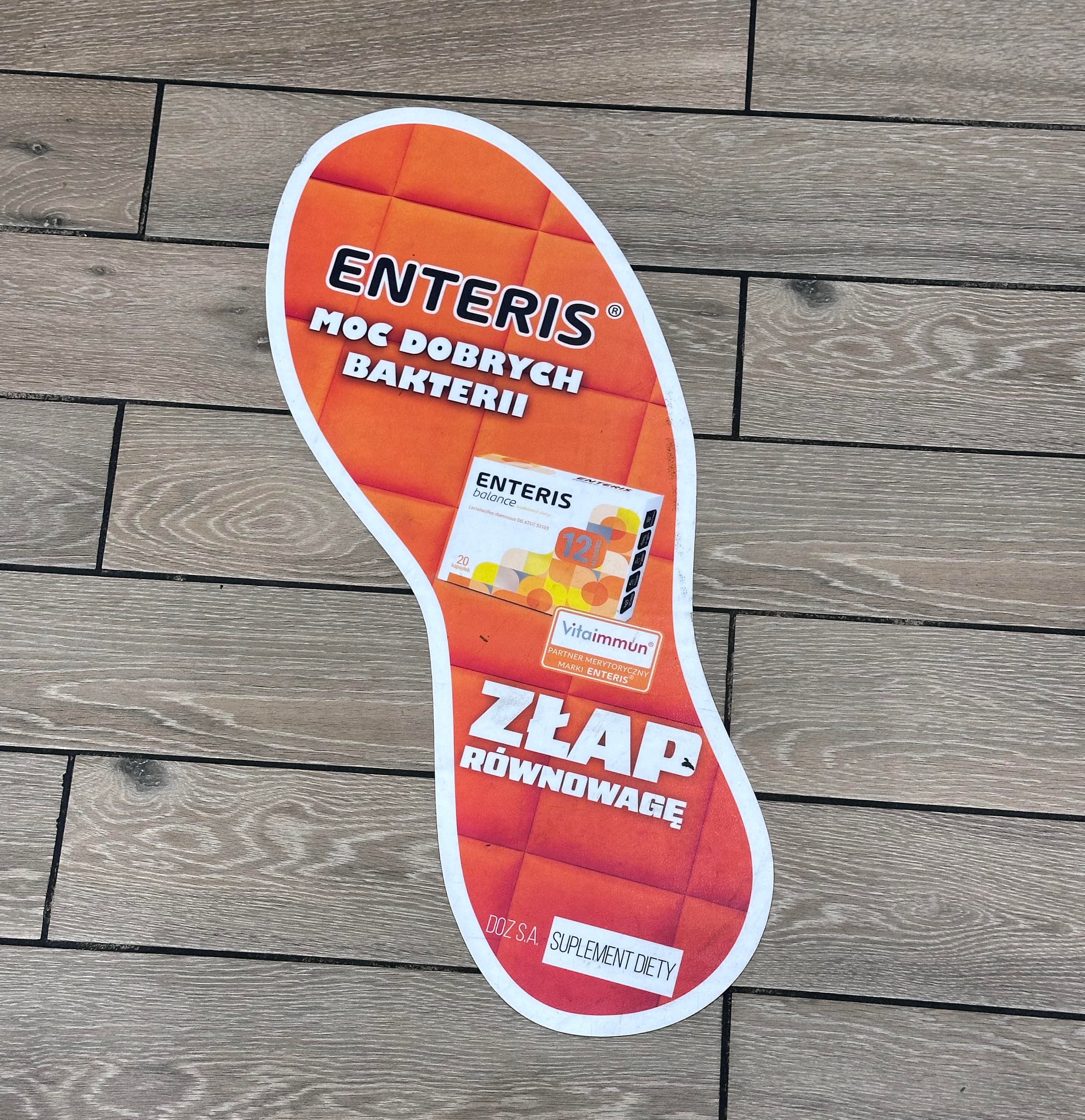 Wykonujemy naklejki na trwałej folii podłogowej z mocnym klejem i laminatem antypoślizgowym (NO SLIP, klasy R9–R10). Odporne na intensywny ruch pieszy, zmywanie i działanie środków chemicznych. Przeznaczone na podłogi z betonu, płytek, drewna, paneli, posadzek żywicznych.