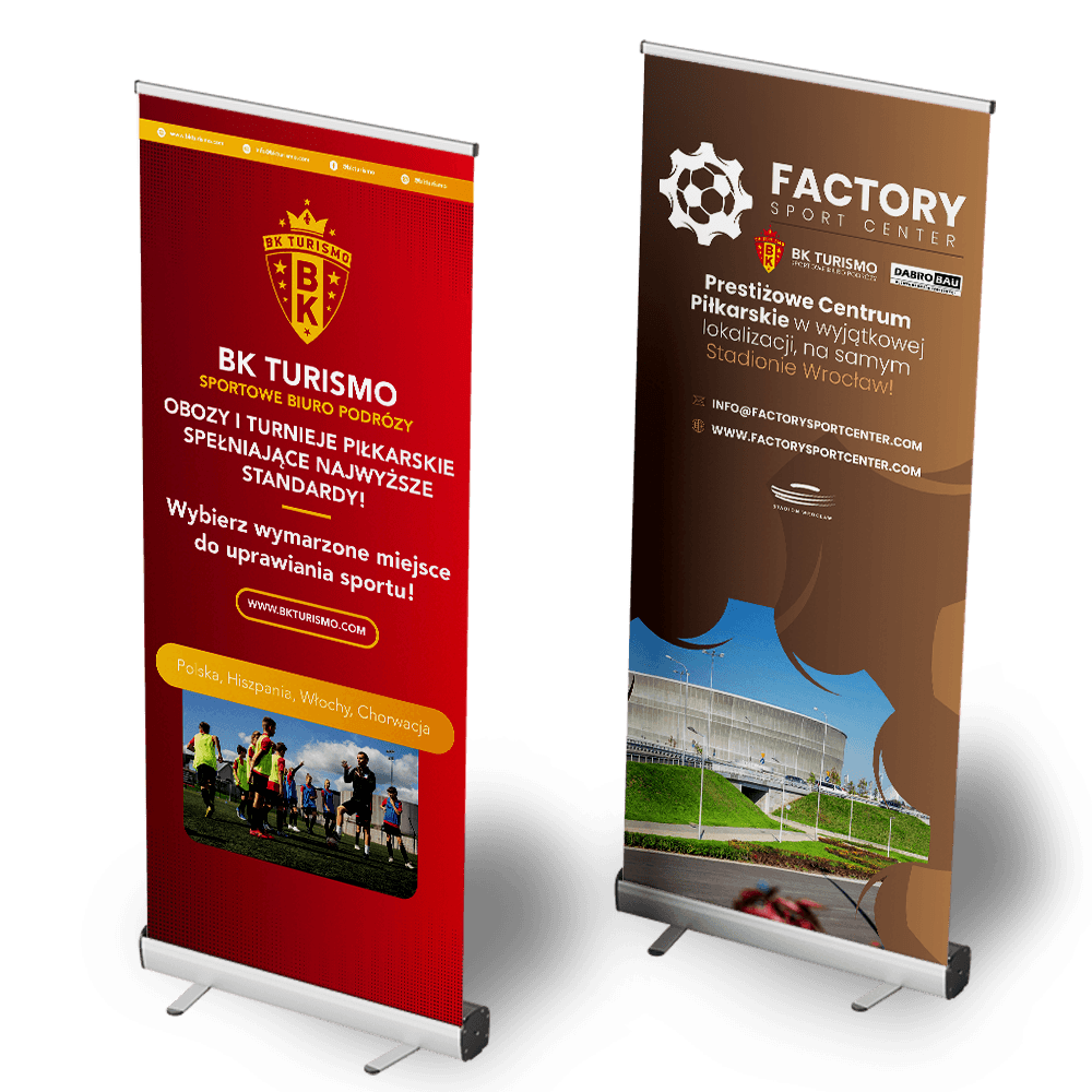 Standardowo wykonujemy rollupy jednostronne w rozmiarach 85, 100 lub 120 x 200 cm w kasetach z grubego aluminium na materiale Blockout Pet Eco satin 330g, gruby i wytrzymały.